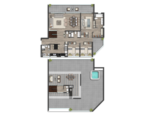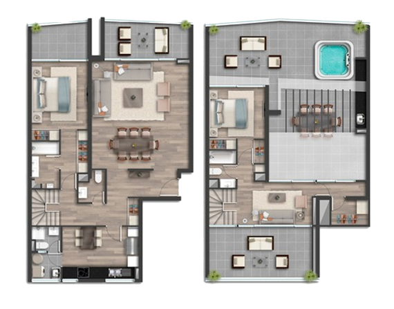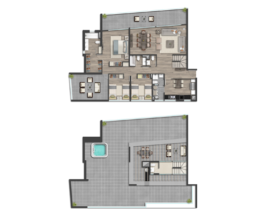 Destaca por su moderno diseño dentro de los cuales hay 6 departamentos dúplex, con terrazas descubiertas y jacuzzi, además de unidades 2 con jardín de uso y goce.