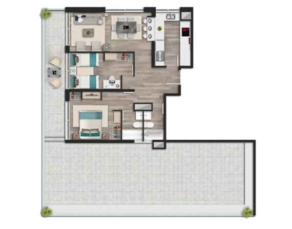 Un proyecto que destaca por la innovadora arquitectura de las cocinas de sus unidades, modernos y prácticos espacios, con terminaciones de primer nivel y la inclusión de oficinas o salas multipropósito.